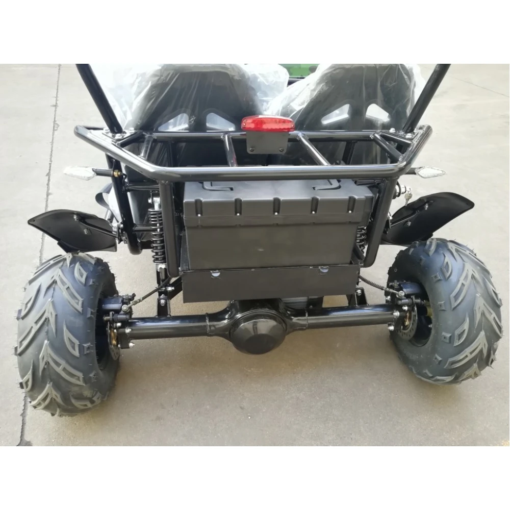 Техника представлена прочной и надежной конструкцией. Производитель акцентирует внимание на двигателе мощностью 1500 Вт. Улучшенные показатели мотора позволяют с легкостью набирать скорость 45 км/час. Для большей маневренности модель оснащена 3-х скоростным переключателем. Повышенная проходимость техники на дороге любого типа и покрытия обеспечивается высоким дорожным просветом. Багги имеет удобные сидения с функцией регулировки для длительных поездок без дискомфорта. Прочные ремни безопасности надежно фиксируют пассажира при езде. Измерение скоростных показателей обеспечивается современным LED спидометром.