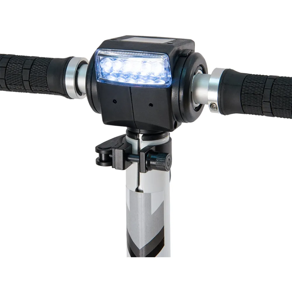 Аккумулятор 6.5 А/ч до полной зарядки необходимо 2 часа, надо просто включить в сеть. Этой емкости хватит на 30 км. На рулевой стойке установлена фара, что сделает вас заметным в темное время. Информационный дисплей позволит легко держать под контролем основные показатели.