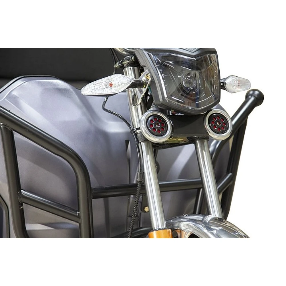Технические характеристики электротрицикла представлен мощным двигателем (1000 Вт). В сочетании с емкой АКБ техника способна развивать скорость до 25 км/час и преодолевать на одной подзарядке до 30 км пути. При проблемах с батареей пользователь может перейти на горючее, поскольку техника оснащена бензогенератором 60V 4500 ватт и бензобаком вместимостью 10 л. Параметры достаточные для транспортировки вещей и продуктов животноводства, а также комфортного отдыха на природе.