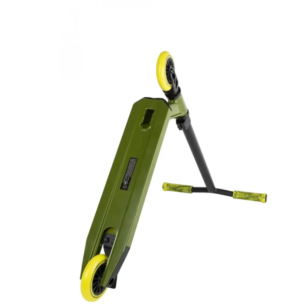 Дизайн самоката будет явно выделяться на фоне других скутеров и лишь подчеркнёт райдера и его стиль. Его Т-образный руль с небольшим изгибом имеет повышенный запас прочности, потому что сделан из высоколегированной стали. Размеры руля подобраны специально для самых маленьких пользователей. Грипсы руля долговечны и выполнены из нескользящего материала. Также руль оснащён барендами, что повышает безопасность райдера. Алюминиевая дека имеет большой запас прочности и покрыт специальной шкуркой, которая обеспечивает отличный контакт с подошвой кед. Она имеет оптимальные размеры, а также возможность установки пег для скольжения. Зажим самоката типа IHC значительно увеличивает прочность узла в сравнении с резьбовым, установленным на аналогах.